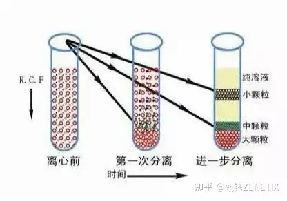 速率區(qū)帶離心是一種不完全的沉降分離,沉降效果受物質(zhì)本身物理尺度的影響較大,一般應(yīng)用在物質(zhì)大小相異而密度相同的情況, 是指根據(jù)待分離的粒子在離心力作用下,在梯度液中沉降速度的不同,離心后具有不同沉降速度的粒子處于不同的密度梯度層內(nèi),形成幾條分開的樣品區(qū)帶,達(dá)到彼此分離的目的。