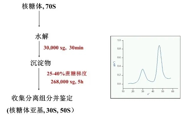 日立超速離心機速率區(qū)帶離心經典的應用就是通過蔗糖密度梯度離心,進行各種亞細胞器(核糖體、線粒體、Exosome 等)和病毒顆粒(病毒載體、疫苗等)的純化。例如,我們在上一期中得到的 70S 核糖體沉淀,經過水解后,可利用蔗糖密度梯度離心,進一步分離純化得到 50S 和 30S 的兩個亞基。具體的實驗流程如下: